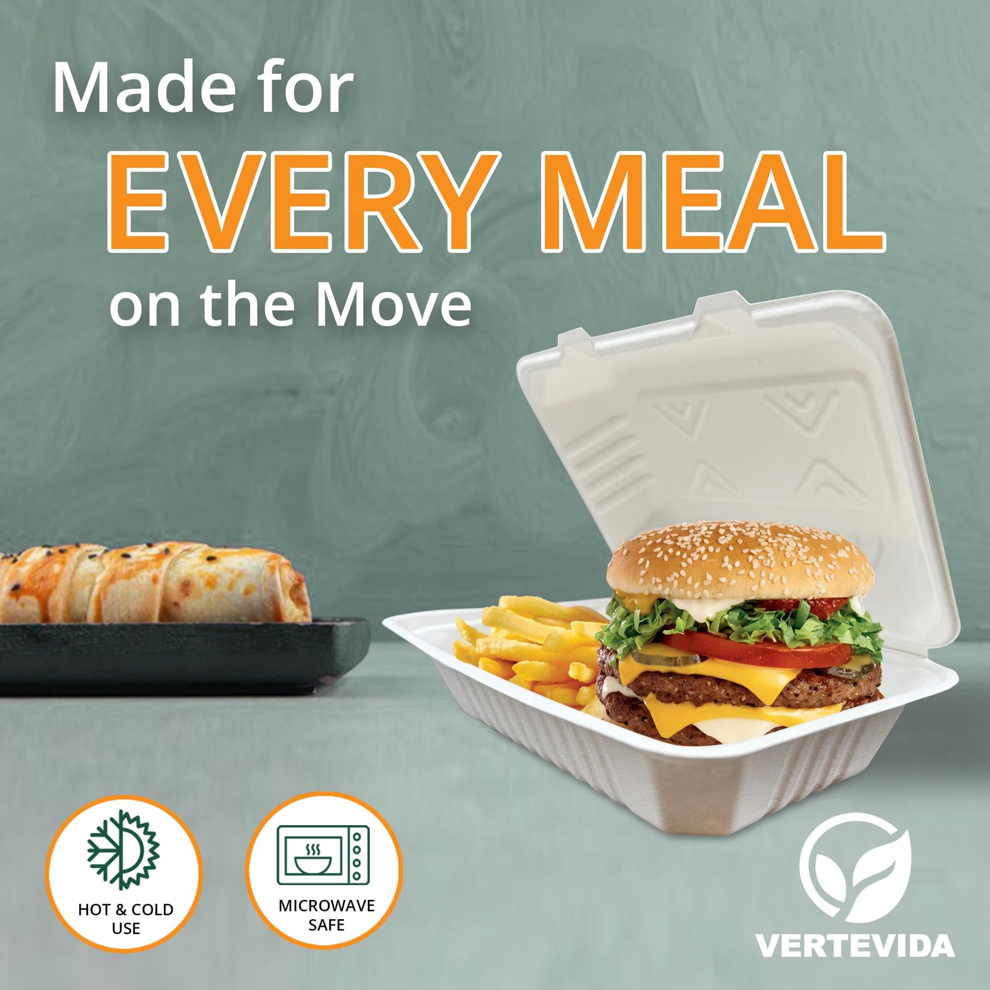 ![9x6 Compostable Clamshell Take Out Containers [50 Pack] - Rectangular Food Containers | VerteVida](http://www.vertevida.com/cdn/shop/files/28de163a.jpg?v=1767195636&width=1445)